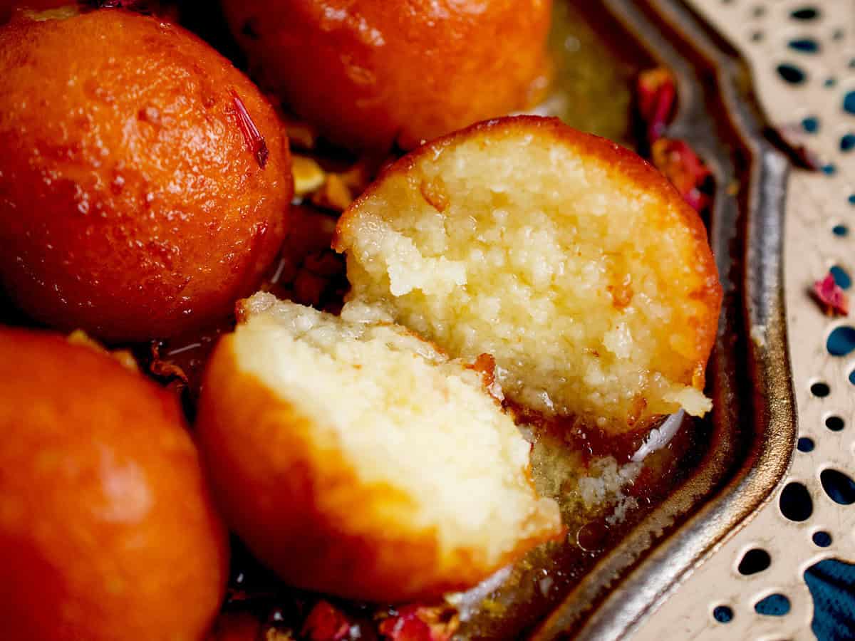 Soft, melt-in-your-mouth milk dumplings, deep-fried to a golden brown and soaked in fragrant rose-scented sugar syrup